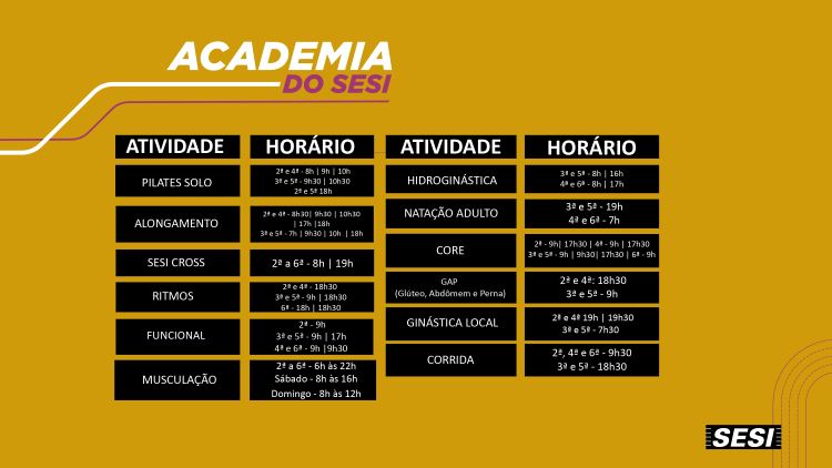 Para mais informações e, em caso de dúvida, contate a unidade da sua Academia SESI-SP!